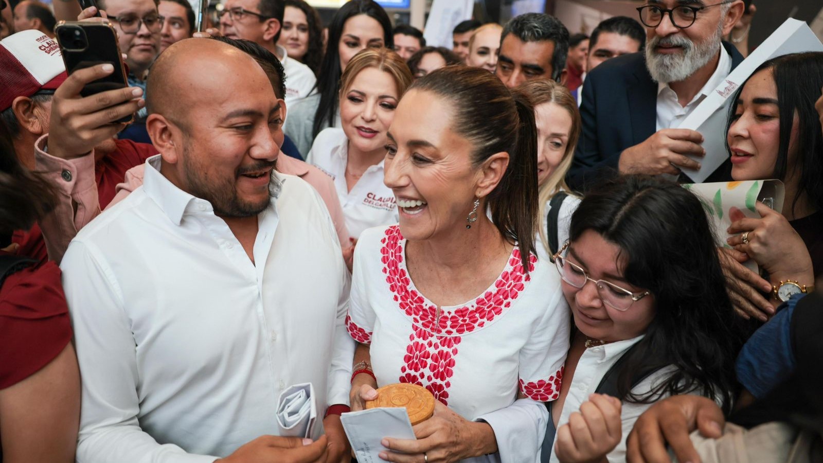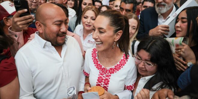 La música del mariachi Ángeles no se hizo esperar y tocó canciones como “México lindo y querido”, y “Ay Jalisco no te rajes”, para recibir a la candidata de la Cuarta Transformación.