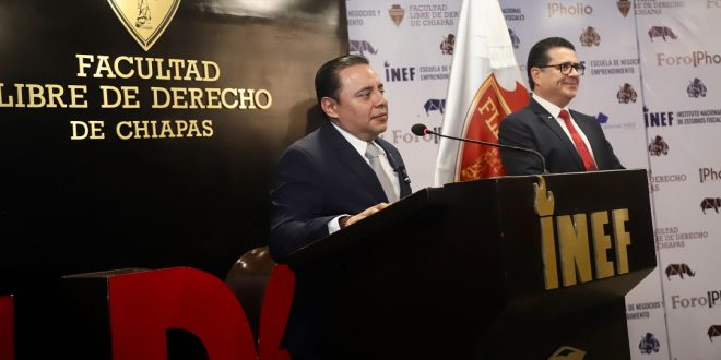 TUXTLA GUTIERRES, Chiapas, 28 de febrero de 2026.- El magistrado presidente del Poder Judicial del Estado, Juan Carlos Moreno Guillén, y el rector de la Facultad Libre de Derecho Chiapas, Gabriel Enrique Bravo del Carpio, encabezaron el acto protocolario que marcó el inicio de las actividades de las maestrías que cursarán servidoras y servidores de esta casa de la justicia.