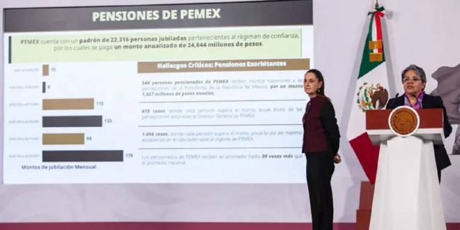 En total, la empresa petrolera identifica 544 pensionados con ingresos mayores a los de la titular del Ejecutivo, lo que representa un costo anual de 1,827 millones de pesos. En conjunto, Pemex eroga más de 22 mil millones de pesos al año en jubilaciones de personal de confianza.