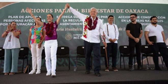 Las promesas en el norte Coahuila fue la primera parada de la gira conjunta en el norte del país. El 14 de junio López Obrador y Sheinbaum se reunieron con familiares de mineros que quedaron atrapados en Pasta de Cochos, con quienes se comprometieron a que sea en éste o en el otro sexenio se concluirá con el rescate de los restos de quienes perdieron la vida en 2006. “Antes de irme quiero regresar para entregar buenas cuentas, y deseo con toda mi alma que, antes de irnos, ya tengamos a los mineros con nosotros, pero si por alguna circunstancia no alcanzamos, ya escuchamos el compromiso de Claudia de continuar esta noble labor”, dijo el presidente López Obrador. En Coahuila y Durango, el compromiso fue que se llevará el IMSS-Bienestar a esos estados que al ser gobernados por la oposición, no se han adherido al programa federal de salud. “En la nueva etapa, cuando inicie el nuevo gobierno, va a haber tiempo para llegar a un acuerdo con Esteban (Villegas), con Manolo (Jiménez). No veo ninguna dificultad porque ellos están actuando con responsabilidad y se va a llegar a un acuerdo para que se pueda aplicar aquí, en Durango y en Coahuila, el IMSS-Bienestar”, afirmó. En Sonora, hace unos días se comprometieron a inaugurar el hospital IMSS-Bienestar y la universidad en Guaymas. La virtual presidenta electa se comprometió a continuar con el acceso a la justicia para los pueblos indígenas. ‘La vamos a lograr ahora que tenemos la mayoría calificada en el Congreso”, afirmó. Desde Baja California, ambos se comprometieron a financiar el subsidio a la luz en cinco entidades: Baja California, Baja California Sur, Sonora, Sinaloa, y Nayarit. El plan para el sur En el sur del país, Sheinbuam y López Obrador han supervisado el avance de dos obras estratégicas: el Tren Maya y el Corredor Interoceánico- Istmo de Tehuantepec. En la supervisión de la construcción de los tramos 5, 6 y 7 del Tren Maya, Sheinbaum y López Obrador viajaron en el Tren e hicieron el recorrido de Teya en Kanasín, Yucatán, a la estación Cancún Aeropuerto en Quintana Roo. Además de calificar de una “hazaña”, Sheinbaum se comprometió a consolidar ese proyecto. En Veracruz, Sheinbaum y López Obrador también se subieron al Tren Interoceánico, y se comprometieron a concluir la obra que no logrará ser terminada en esta administración. “Vamos a darle continuidad a las obras estratégicas del presidente Andrés Manuel López Obrador, consolidar porque nos va a tocar consolidar ese cimiento, ese primer piso de estos seis años el mejor presidente de México, Andrés Manuel López Obrador”, afirmó Claudia Sheinbaum. En Oaxaca, Sheinbaum también anunció su propuesta para que la Guardia Nacional sea transferida a la Secretaría de la Defensa Nacional, un proyecto original del presidente López Obrador. La supervisión para el centro
