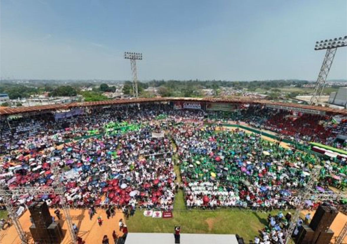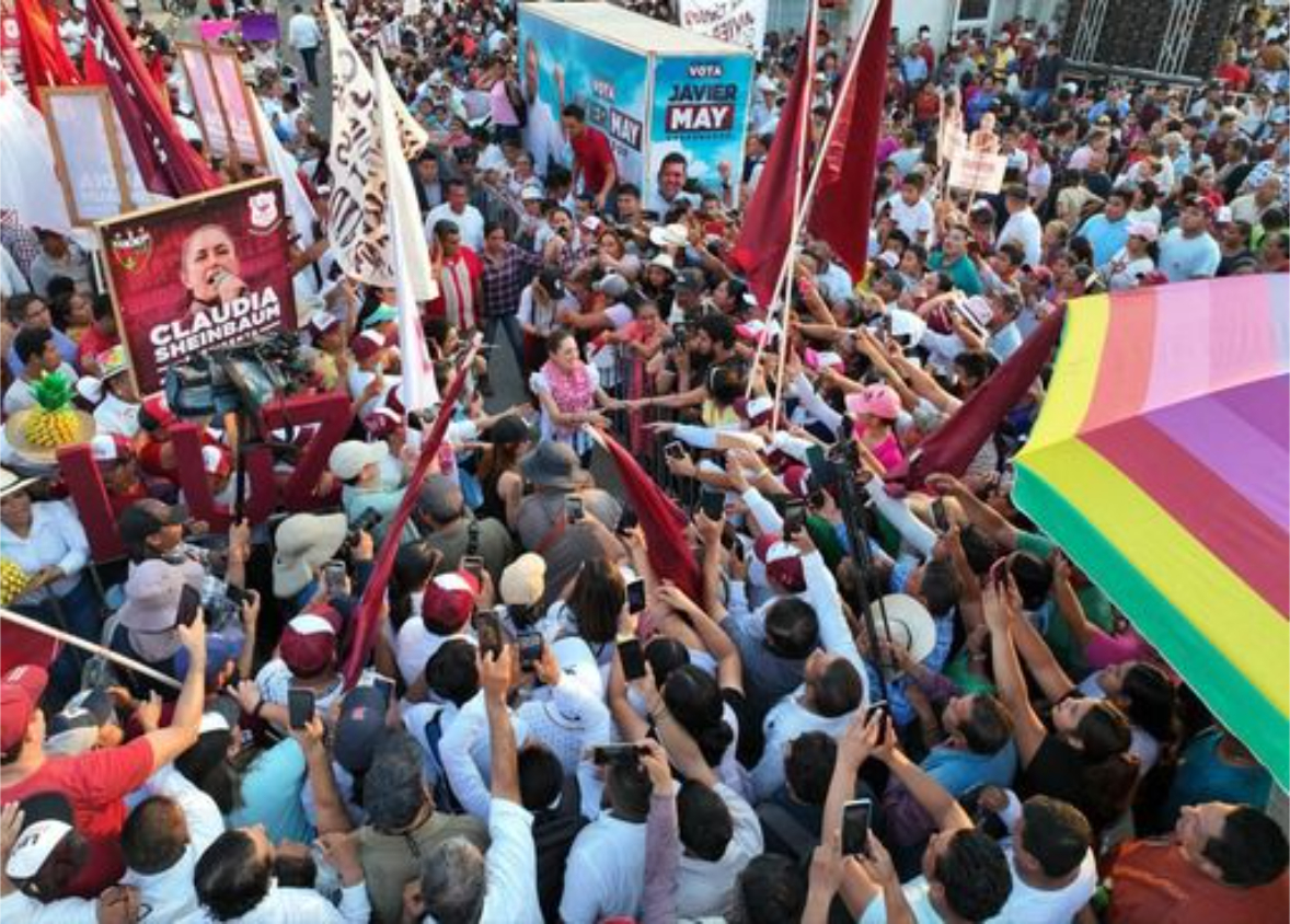 + “Claudia, amiga, el pueblo está contigo”, fueron algunas de las porras con las que el sureste de México demostró su afecto a la abanderada de Morena, el PT y el PVEM