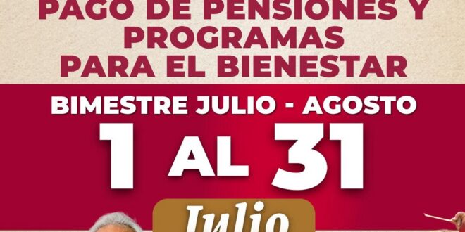 + Del 1° al 31 de julio se realizará la dispersión correspondiente al bimestre julio agosto