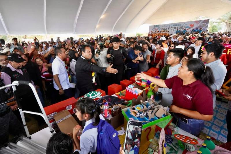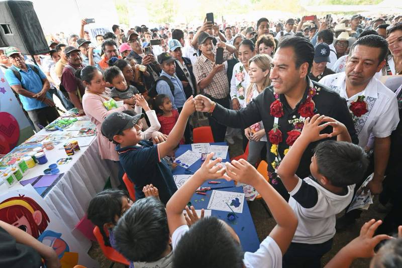 El mandatario, acompañado por la señora Sofía Espinoza Abarca, convivió con niñas, niños, mujeres, hombres, personas adultas mayores y familias enteras que se acercaron emocionadas para saludarlo y abrazarlo. Además, recorrió los stands de distintas instituciones estatales y convoyes de salud, donde se brindaron servicios gratuitos, y realizó la entrega de apoyos escolares, ayudas técnicas y funcionales para sectores vulnerables, así como incentivos para el campo.