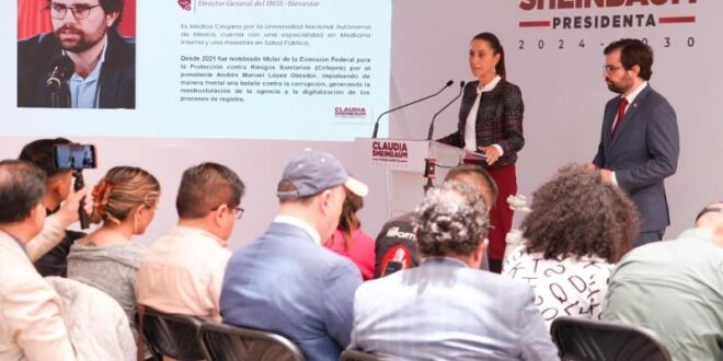 “El trabajo que hace el director del IMSS-Bienestar es fundamental, porque de él dependen centros de salud, hospitales y toda la propuesta de atención, de prevención y atención a la salud. Alejandro, —ustedes ya lo conocen, ha estado en ´Las Mañaneras´ varias veces con el Presidente— y ha hecho un trabajo extraordinario al frente de COFEPRIS erradicando la corrupción que había en esta institución. Previo a ello, durante la pandemia él se hizo cargo de capacitar a todos los médicos generales o de otra especialidad, para poder atender el COVID; nos conocemos y estoy muy contenta de que Alejandro acepte esta responsabilidad, que es una de las más importantes que vamos a desempeñar”, informó.