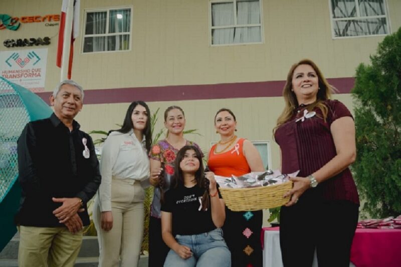 En representación de Ana Isabel Granda González, directora general del Sistema DIF Chiapas, Paola Natzarelly Cortois García, jefa de la Unidad de Apoyo Jurídico, reconoció la labor del Cecytech por sumarse a los esfuerzos del DIF estatal para impulsar acciones que fortalezcan el tejido social y promuevan la participación ciudadana en favor de las personas en situación de vulnerabilidad.