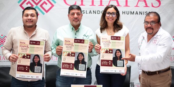 TUXTLA GUTIÉRREZ, Chiapas; 20 de octubre de 2025.- La Comisión de Trabajo y Previsión Social y Seguridad Social en el Congreso del Estado, que preside la diputada Andrea Negrón Sánchez, en coordinación con el Servicio Nacional de Empleo, anunciaron la realización de la “Feria Nacional del Empleo para Grupos Vulnerables”, que se realizará el miércoles 22 de octubre en el Centro de Convenciones y Polyfórum Chiapas.