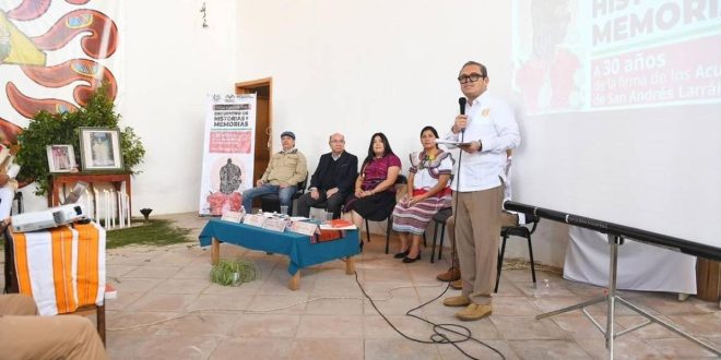 Asimismo, el coordinador de Asesores y Proyectos Estratégicos del Gobierno del estado, Juan Carlos Gómez Aranda, al realizar un recorrido por los eventos que precedieron a esta firma de acuerdos, señaló que los actores fundamentales fueron los pueblos originarios de Chiapas, hecho que los visibilizó ante el mundo, abriendo la puerta al pluralismo político y social.