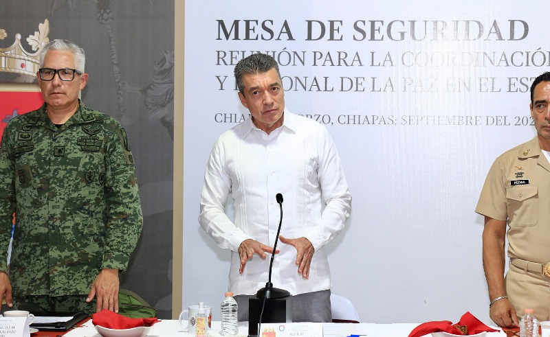 Chiapa de Corzo, Chiapas; 19 de septiembre de 2024.- Durante la Mesa de Coordinación Estatal para la Construcción de la Paz y la Seguridad, efectuada en Chiapa de Corzo, el gobernador Rutilio Escandón Cadenas resaltó la participación de Chiapas en el Simulacro Nacional 2024 realizado este jueves 19 de septiembre, pues se da muestra del interés de fortalecer la cultura de la prevención y autoprotección, a fin de que cada vez la población esté mejor capacitada y organizada ante cualquier desafío.