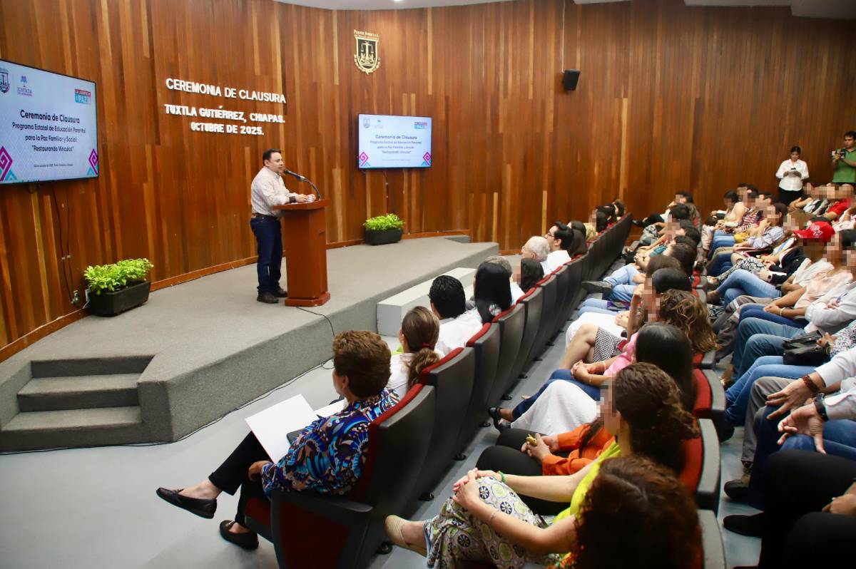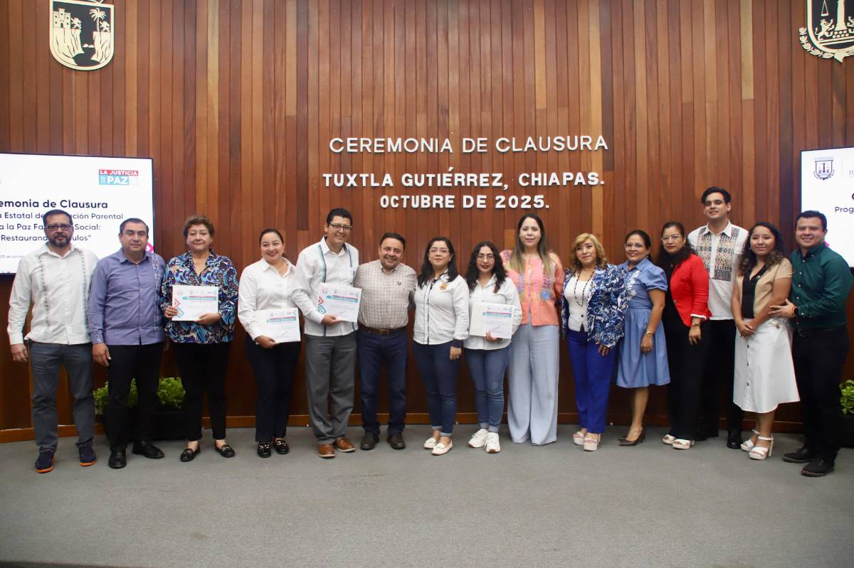TUXTLA GUTIERREZ, Chiapas, 03 de octubre de 2025.- El Poder Judicial del Estado de Chiapas realizó la clausura del Programa Estatal Parental para la Paz Familiar y Social: “Restaurando Vínculos”, una iniciativa que impulsa el magistrado presidente Juan Carlos Moreno Guillén para fortalecer las habilidades parentales de madres, padres y personas cuidadoras, involucradas en juicios de divorcio, guarda, custodia y derecho de visita y convivencia.