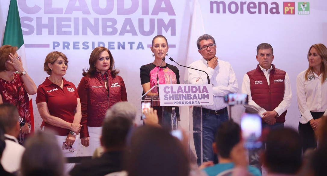 En conferencia de prensa, Claudia Sheinbaum estuvo acompañada de Ricardo Monreal Ávila, coordinador de Enlace Territorial de la campaña presidencial; Alma Alcaraz, candidata a la gubernatura del estado de Guanajuato; Ricardo Sheffield Padilla y Virginia “Kikis” Magaña, candidatos al Senado de la República; Irma Leticia González Sánchez, candidata a presidenta municipal de Irapuato y Martha Lucia Micher, candidata de representación proporcional al Senado de la República.