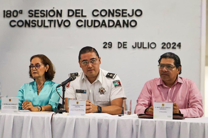 Durante la sesión se tuvo la intervención del C. Julio César Sánchez Esquinca, de la Comisión de Seguridad y Prevención del Delito, quien compartió los avances y trabajos de su comisión. Posteriormente, el Secretario de Seguridad Pública y Tránsito Municipal, Jorge Alexis Zuart Córdova, presentó su informe, proporcionando una visión integral de la situación de seguridad en nuestra ciudad.