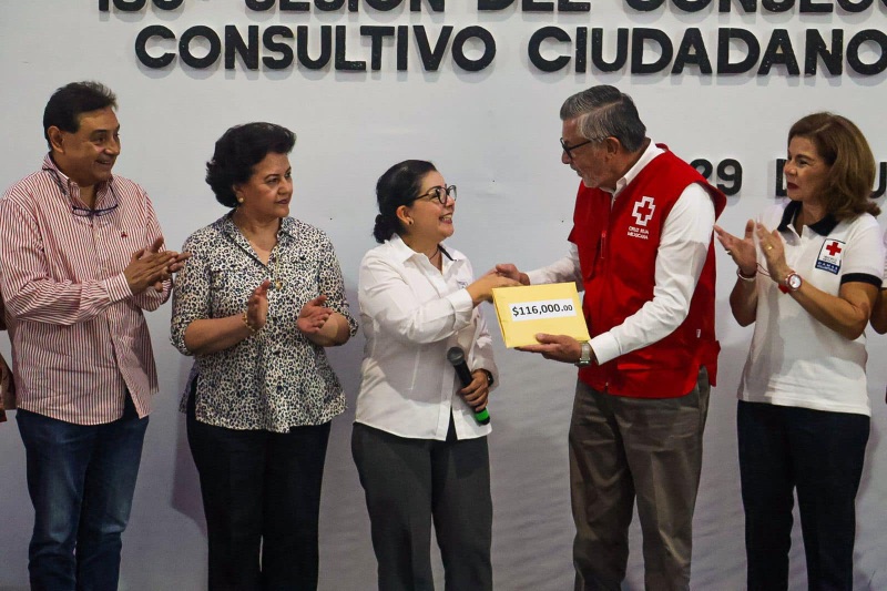 Finalmente la secretaria general, Karla Burguete, hizo entrega al delegado de la Cruz Roja, Ángel Tovar una donación por $116,000.00, monto donado por parte del gabinete municipal, directores, jefes de área del gobierno municipal de Tuxtla Gutiérrez.