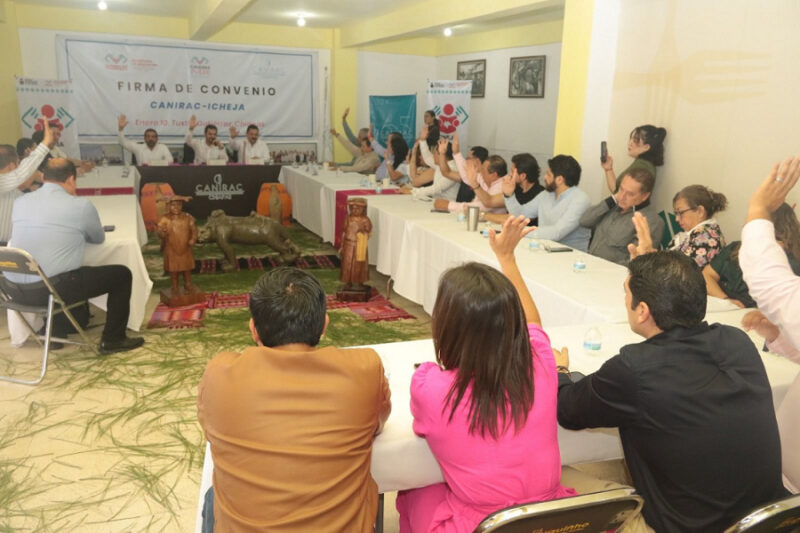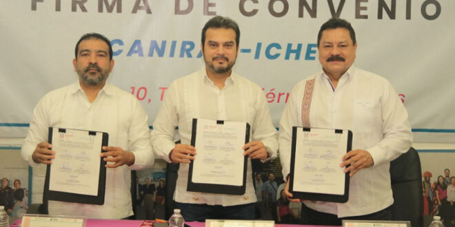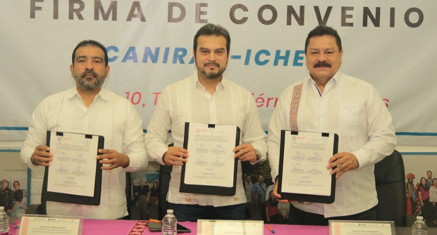+ Funge secretario de Educación como testigo en la firma de un convenio el entre Icheja y la Canirac