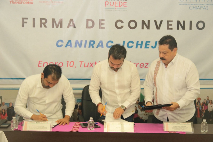 TUXTLA GUTIÉRREZ, Chiapas; 1|0 de enero de 2025.- .– Seremos un ejemplo puntual, no por jactancia, sino como un deber de la conciencia y de la justicia, compartió el secretario de Educación, Roger Mandujano Ayala, al fungir como testigo de la firma de un convenio de colaboración institucional entre el Instituto Chiapaneco de Educación para Jóvenes y Adultos (Icheja) y la Cámara Nacional de la Industria de Restaurantes y Alimentos Condimentados (Canirac).
