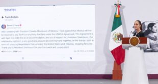 Read More »“México fue tratado con mucho respeto y llegamos a este acuerdo”: Presidenta Claudia Sheinbaum anuncia que México no pagará aranceles en productos dentro del T-MEC