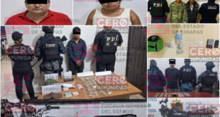 En Chiapa de Corzo, Comitán, Berriozábal y Tonalá, se aseguraron sustancias ilícitas TUXTLA GUTIERREZ, Chiapas; 11 de enero de 2025./| No. Comunicado: 19256 | 11/01/2025.- La Fiscalía General del Estado, la Secretaría de Seguridad del Pueblo, la Fuerza de Reacción Inmediata Pakal y policías municipales, detuvieron a seis personas, como …