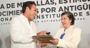+ Reconoció la vocación y trayectoria de las trabajadoras y trabajadores del sector en Chiapas TUXTLA GUTIERREZ, Chiapas, 19 de diciembre de 2025.- Durante la entrega de medallas, estímulos y reconocimientos por antigüedad al personal del Instituto de Salud, el gobernador Eduardo Ramírez Aguilar felicitó a las trabajadoras y los …