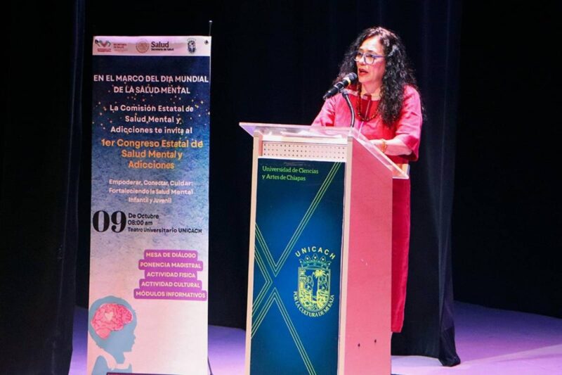 TUXTLA GUTIÉRREZ, Chiapas, 09 de octubre de 2025.- La Secretaría de Salud del Gobierno de Chiapas y la Universidad de Ciencias y Artes de Chiapas (UNICACH), realizaron el Primer Congreso de Salud Mental y Adicciones, bajo el lema: “Empoderar, conectar, cuidar: fortaleciendo la salud mental infantil y juvenil”. Esta colaboración entre instituciones, busca promover una sociedad más humana, empática y solidaria.