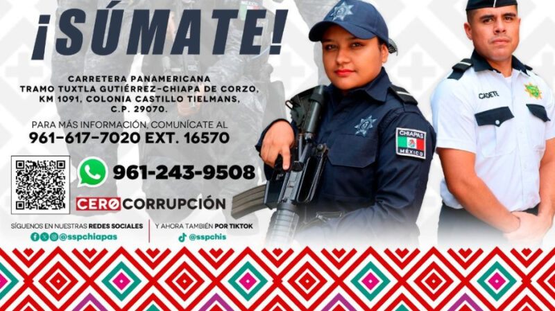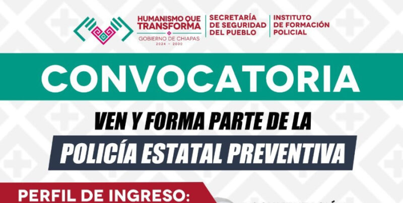 TUXTLA GUTIERREZ, Chiapas, 25 de enero de 2025.- La Secretaría de Seguridad del Pueblo (SSP), a través del Instituto de Formación Policial (IFP), invita a mujeres y hombres comprometidos con la paz y la seguridad de Chiapas a integrarse a la Policía Estatal Preventiva.