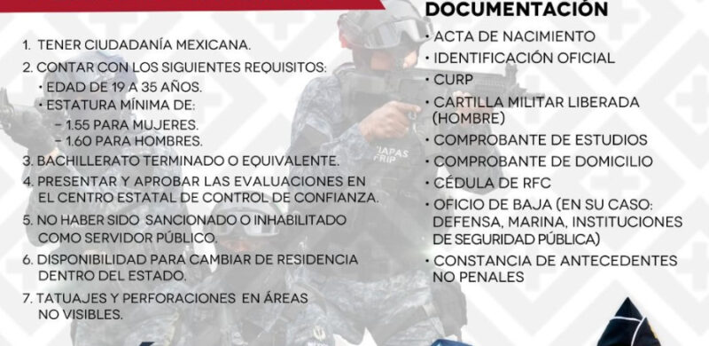 Quienes deseen formar parte de la Nueva ERA de Seguridad en Chiapas deben contar con vocación de servicio, honestidad, lealtad y disciplina. Asimismo, deben cumplir con los siguientes requisitos: