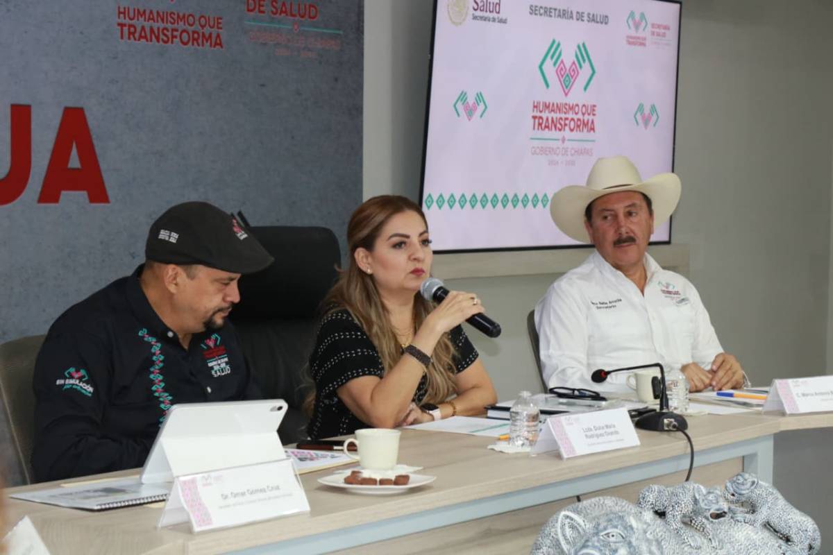 TUXTLA GUTIÉRREZ, Chiapas; 30 de enero de 2026.- Para reforzar las líneas de acción enfocadas a la contención de la miasis por gusano barrenador en humanos y animales, el secretario de Salud estatal, Omar Gómez Cruz, junto a la secretaria general de Gobierno y Mediación, Dulce Rodríguez Ovando, y el secretario del Campo, Marco Antonio Barba Arrocha, sostuvieron una Reunión de Análisis Situacional con jefes de las 10 jurisdicciones sanitarias del estado.