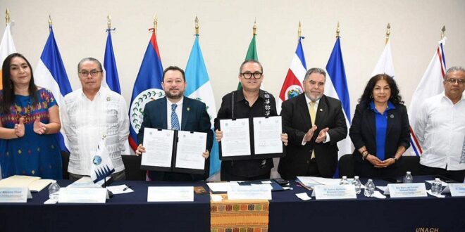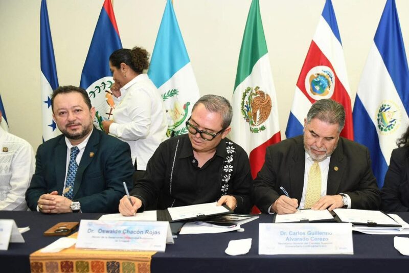TUXTLA GUTIÉRREZ, Chiapas; 14 de octubre de 2025. – Con la firma tripartita entre la UNACH, la Universidad San Carlos de Guatemala y el Consejo Superior Universitario Centroamericano, se formalizó el inicio del Programa Universitario “Quetzal: Espacio Común de Educación Superior Chiapas–Centroamérica”, en las instalaciones de la Facultad de Contaduría y Administración, Campus I.