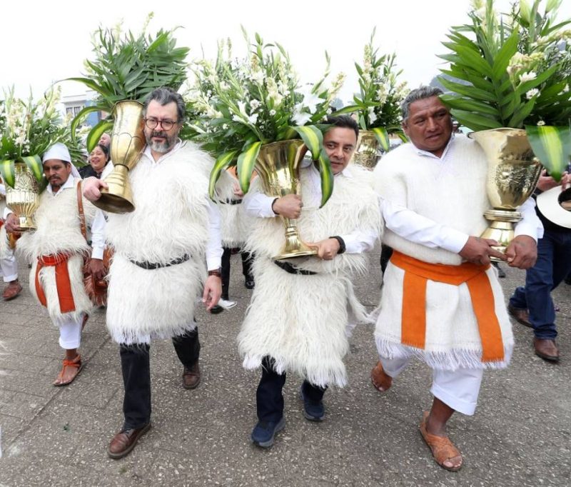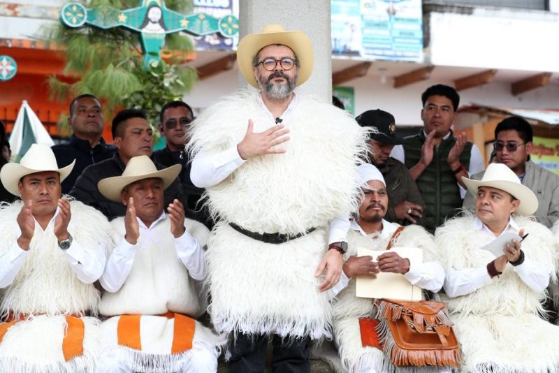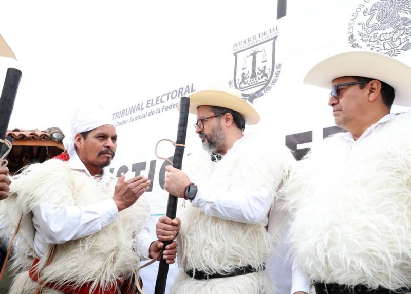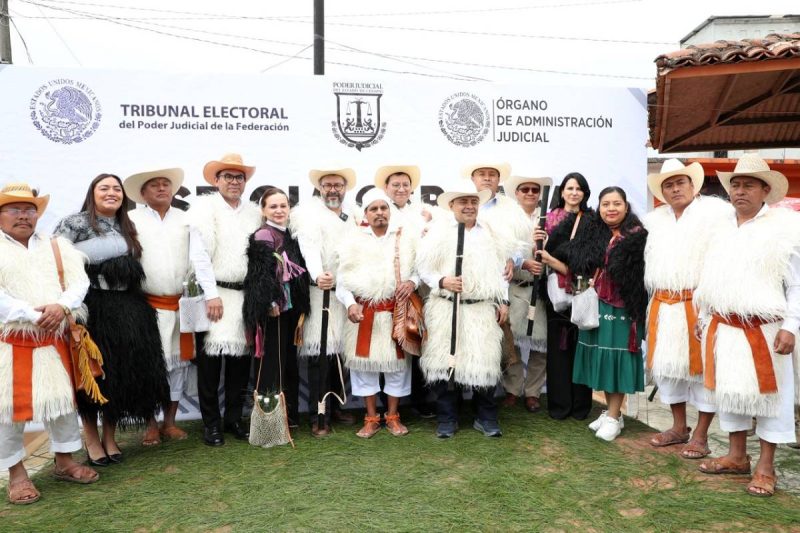 Como parte del programa, se llevó a cabo una ceremonia tradicional encabezada por las autoridades comunitarias, que incluyó la entrega simbólica del bastón de mando, el uso de vestimenta tradicional y una asamblea en plaza pública, en la que las autoridades del TEPJF participaron como muestra de respeto a la organización comunitaria y a los sistemas normativos propios del municipio. Este acto reafirmó el compromiso institucional de dialogar desde el reconocimiento cultural y la cercanía con las comunidades.